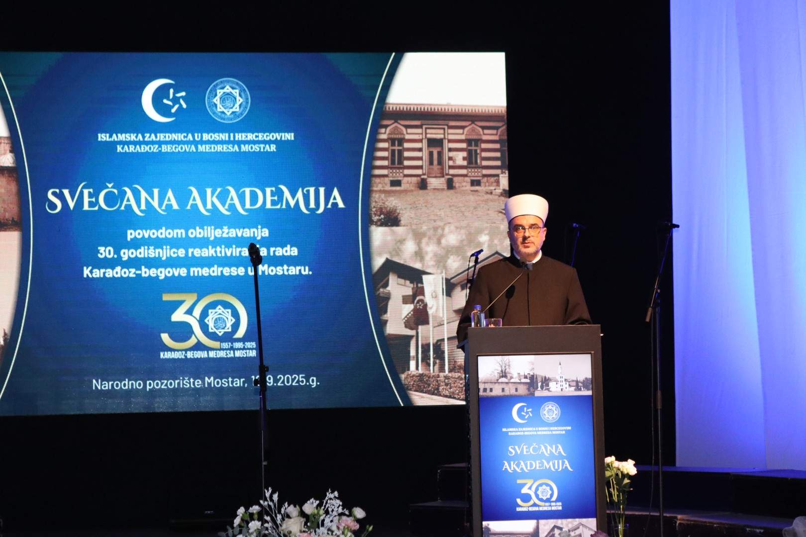 Na svečanoj akademiji govorio je i reisul-ulema Islamske zajednice u Bosni i Hercegovini Husein-ef. Kavazović, koji je uz podsjećanje na temeljne doprinose svih bosanskohercegovačkih medresa općoj kulturi i civilizaciji na prostoru BiH kazao da je Islamska zajednica ponosna na činjenicu da je Karađoz-begova medresa u Mostaru, u široj regiji i u cijeloj Bosni i Hercegovini prepoznata po svom kvalitetnom nastavno-odgojnom programu i po uspjesima koje njeni učenici postižu.