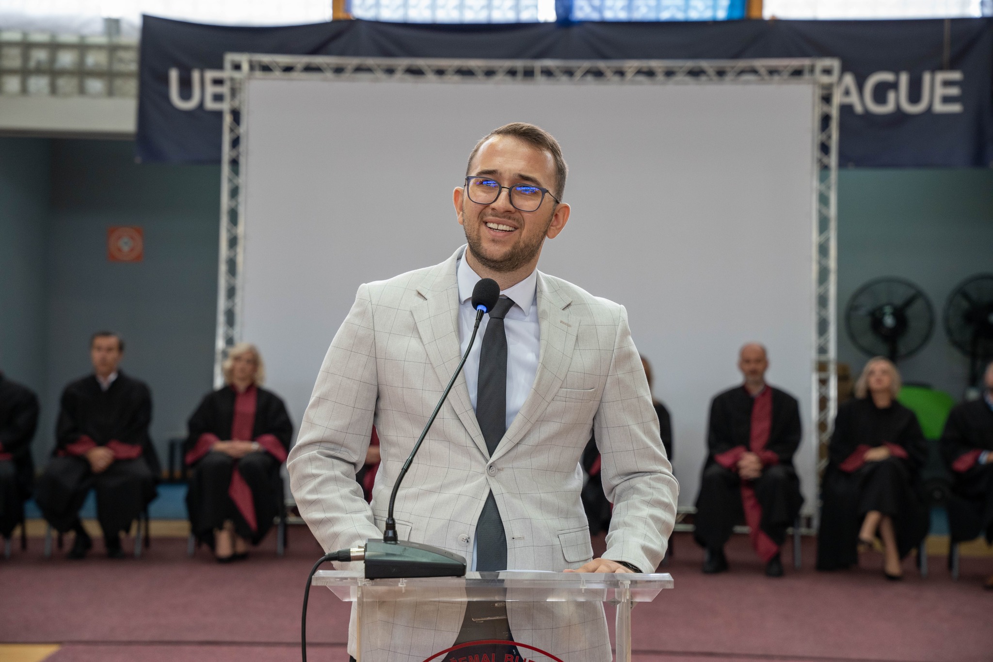 -Dragi brucoši, danas ste zakoračili na put znanja, osobnog sazrijevanja i intelektualnog rasta. Univerzitet i fakultet nisu samo mjesta na kojima se stiču diplome – to je ambijent u kojem se oblikuju ideje, u kojem se uči da se kritički misli, to je prostor gdje se grade prijateljstva i gdje se pripremate da postanete odgovorni, obrazovani i angažirani članovi našeg društva. Vaš izbor da nastavite obrazovanje, da tragate za znanjem i da se usmjerite ka profesijama koje će oblikovati budućnost našeg društva, odraz je vaše hrabrosti, ambicije i vizije. U vremenu kada se suočavamo sa brojnim izazovima – od tehnoloških promjena, do globalnih kriza – potrebni su nam obrazovani, etični i inovativni pojedinci više nego ikad. Zato želim da vas ohrabrim: budite radoznali, postavljajte pitanja, preispitujte odgovore. Ne bojte se grešaka – one su sastavni dio učenja. I ne zaboravite da obrazovanje nije trka, već putovanje koje vas mijenja iznutra – kazao je ministar Velagić.